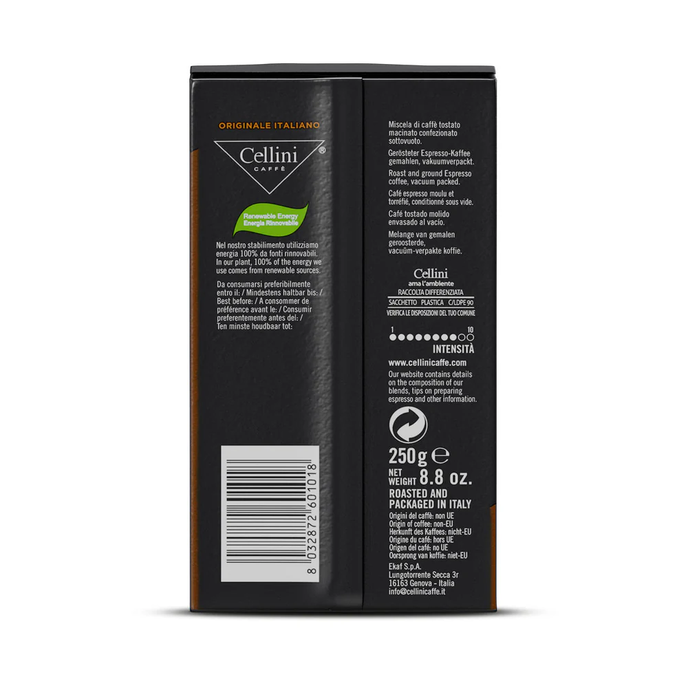 La tradizionale tostatura lenta garantisce una tostatura uniforme dei chicchi e un caffè intenso, dal gusto equilibrato, ben definito e con acidità pronunciata. Note aromatiche di cacao amaro.